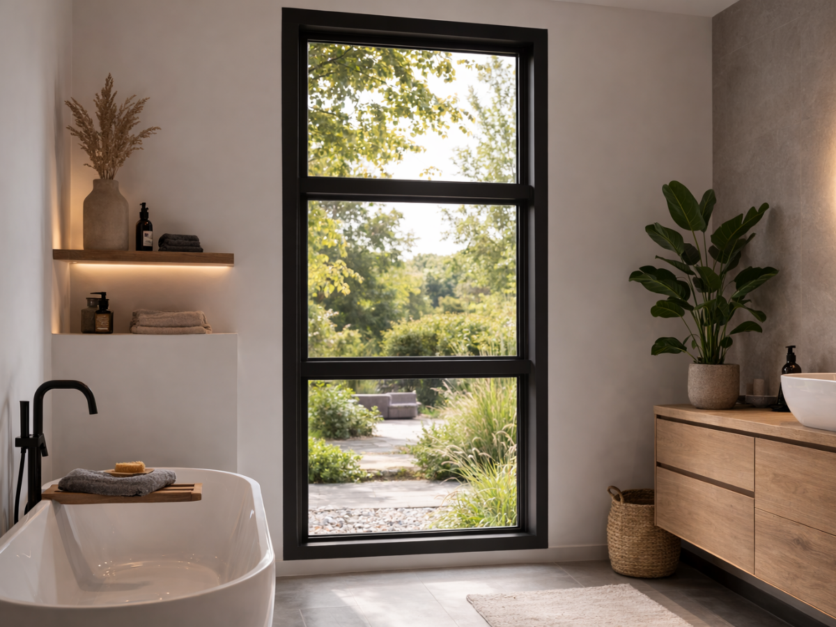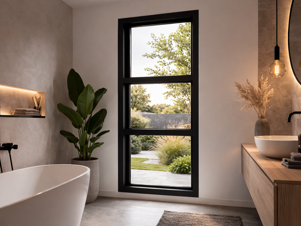 Dreiteiliges Kunststofffenster festverglast & vertikal